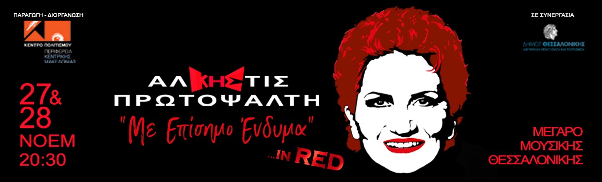 אלקיסטיס פרוטופסלטי - "חגיגה באדום" - מופע בליווי התזמורת הסימפונית של עיריית סלוניקי, בו תשיר את השירים שהיוו ציון דרך בקריירה הארוכה שלה. שתי הופעות בתאריכים 27+28/11/25 ב: Thessaloniki concert hall. לרכישת כרטיסים.