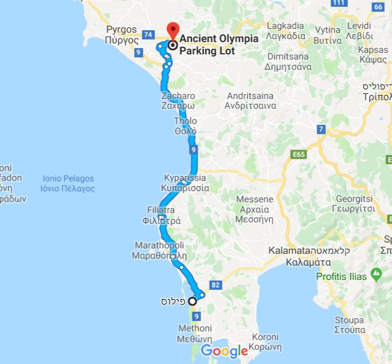 בגוגל מפס: Ancient Olympia: הדרך מפילוס אורכת קצת פחות משעתיים
