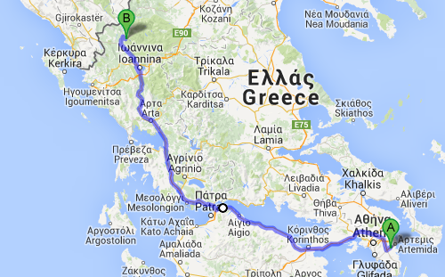 לנוחתים באתונה - היתרון: מספר רב של טיסות סדירות מדי יום. השילוב עם אתונה שהיא עיר מרתקת. היצע הרכבים להשכרה הגדול ביותר. הדרך היפה צפונה דרך תעלת קורינטוס וגשר המיתרים ריו אנטריו, החיסרון: מרחק נסיעה של כ-4.5 שעות, אך כאמור, מדובר בנסיעה שהיא יום טיול. לדעתנו הבחירה הכי טובה היא לנחות באתונה וגם לסיים את הטיול באתונה, ראו תקציר מסלול מאתונה